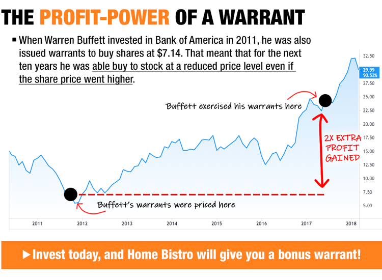 But to make this an even better opportunity, when you purchase shares through this offer, you’ll also get a bonus “warrant,“ which allows you to buy shares at a set price regardless of where the stock goes.