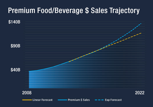 Even before the global pandemic, the premium food and beverage category has been skyrocketing in sales volume. With an estimated $136 billion in retail sales up for grabs by 2022 – an astounding 13% of the $1 trillion U.S. food and beverage category3.