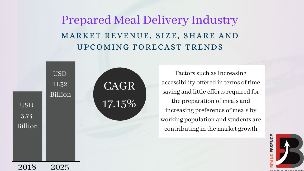 According to Brandessence Market Research and Consulting, the global ready-made meal delivery market is slated to jump from $3.74 billion in 2019 to $11.32 billion in 2027, a CAGR of 17.15%.