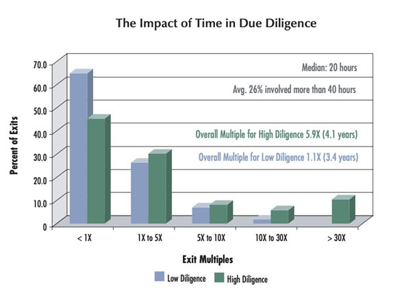 Spending time on due diligence is significantly related to better outcomes.