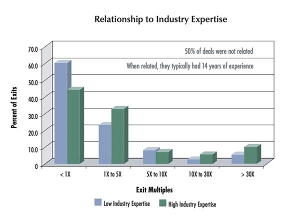 Investment multiples were twice as high for investments in ventures connected to investors’ industry expertise.