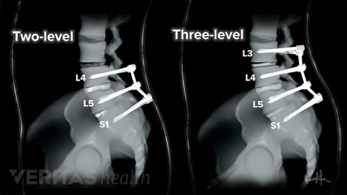 To do this, surgeons place bone – or a bonelike material – in the space between two spinal vertebrae. Metal plates, screws and rods may also be used to hold the vertebrae together, so they can heal into one solid unit.