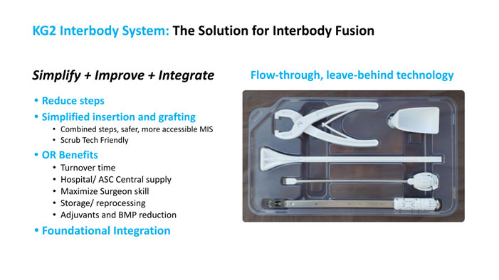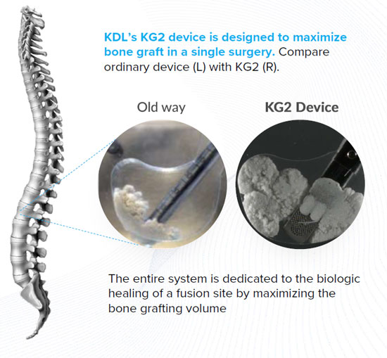 It’s called the KG™2, Solid State Fusion Platform; a simple tool that can help surgeons deliver up to three times the amount of bone grafting material than standard spinal surgical methods.