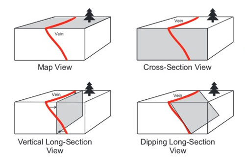 Long Section View is a vertically oriented map that is parallel to the vein.