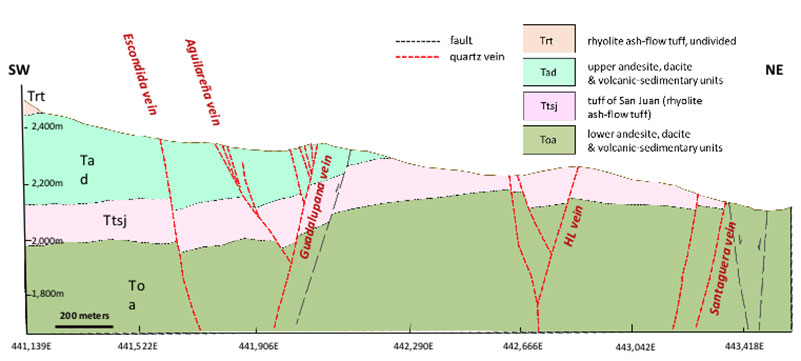 In this picture, imagine we are standing right on top of the Tres Reyes and Aguilereña shaft – which is dead center on the map view – looking west.