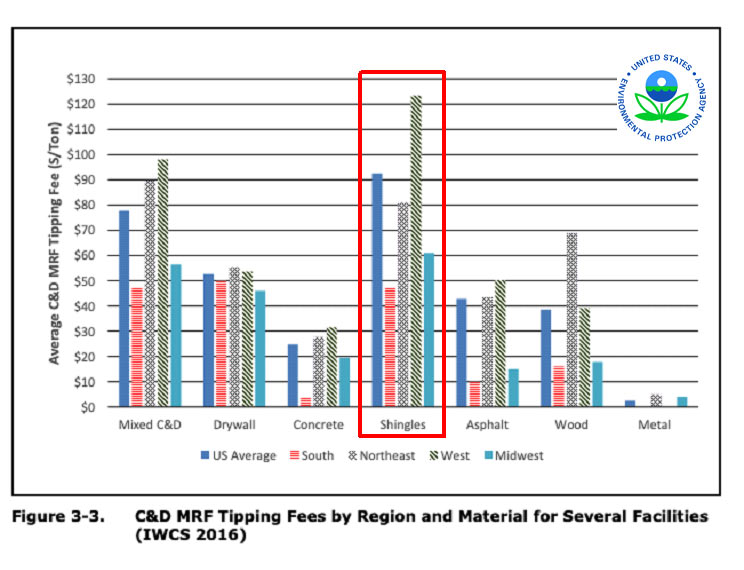 Some states have outright disposal bans and/or mandatory recycling ordinances for shingles. This means shingles must be shipped out of state to a qualified recycling center at additional cost.