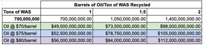 According to Sky Quarry management, an estimated 700 million tons could be already sitting in landfills today (assuming an average 11-12 million tons of WAS landfilled between 1960-2020)…